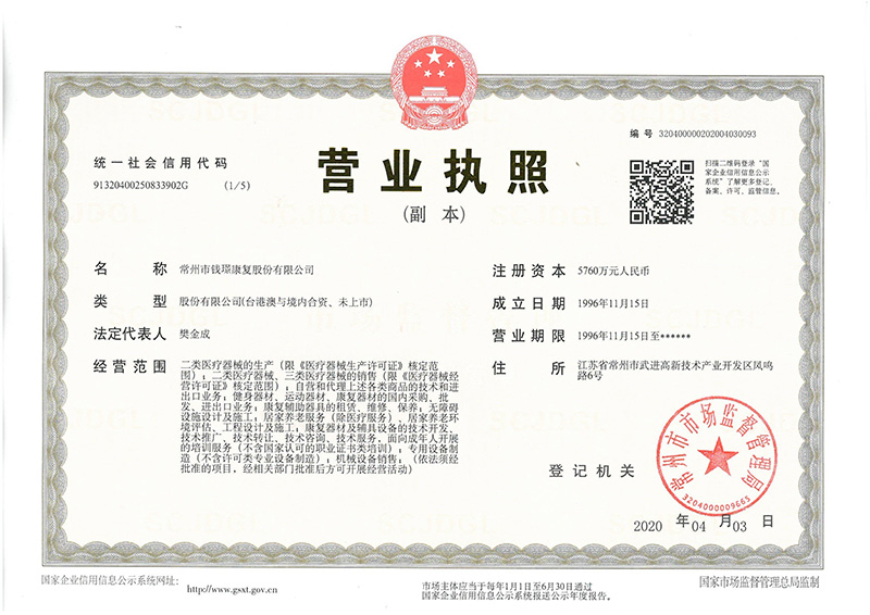 ● 錢璟康復(fù)完成股份制改制,正式更名為“常州市錢璟康復(fù)股份有限公司”;