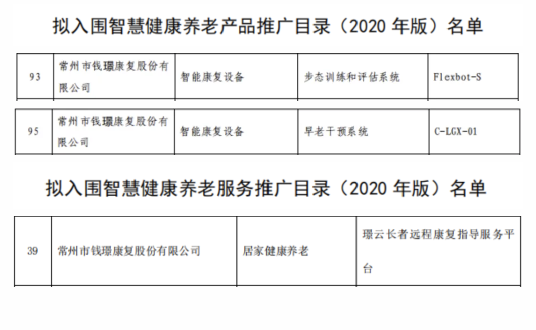 喜報!錢璟康復(fù)三款產(chǎn)品入選《智慧健康養(yǎng)老產(chǎn)品及服務(wù)推廣目錄(2020年版)》